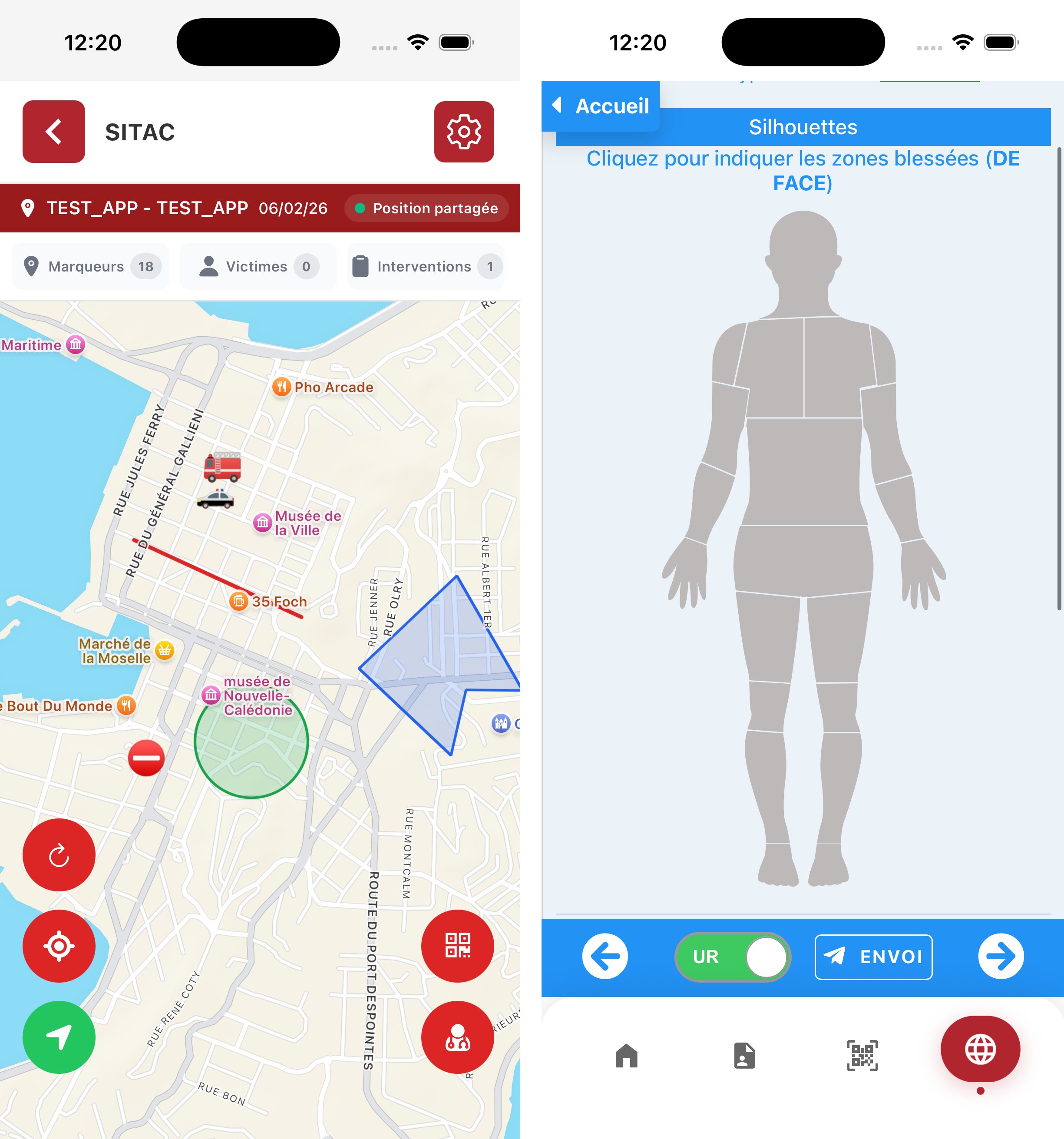 - Gestion des victimes : Les secouristes peuvent scanner le QR Code d'une victime ou en créer une "à la volée" pour initier sa prise en charge et faire remonter instantanément les informations au poste de commandement.