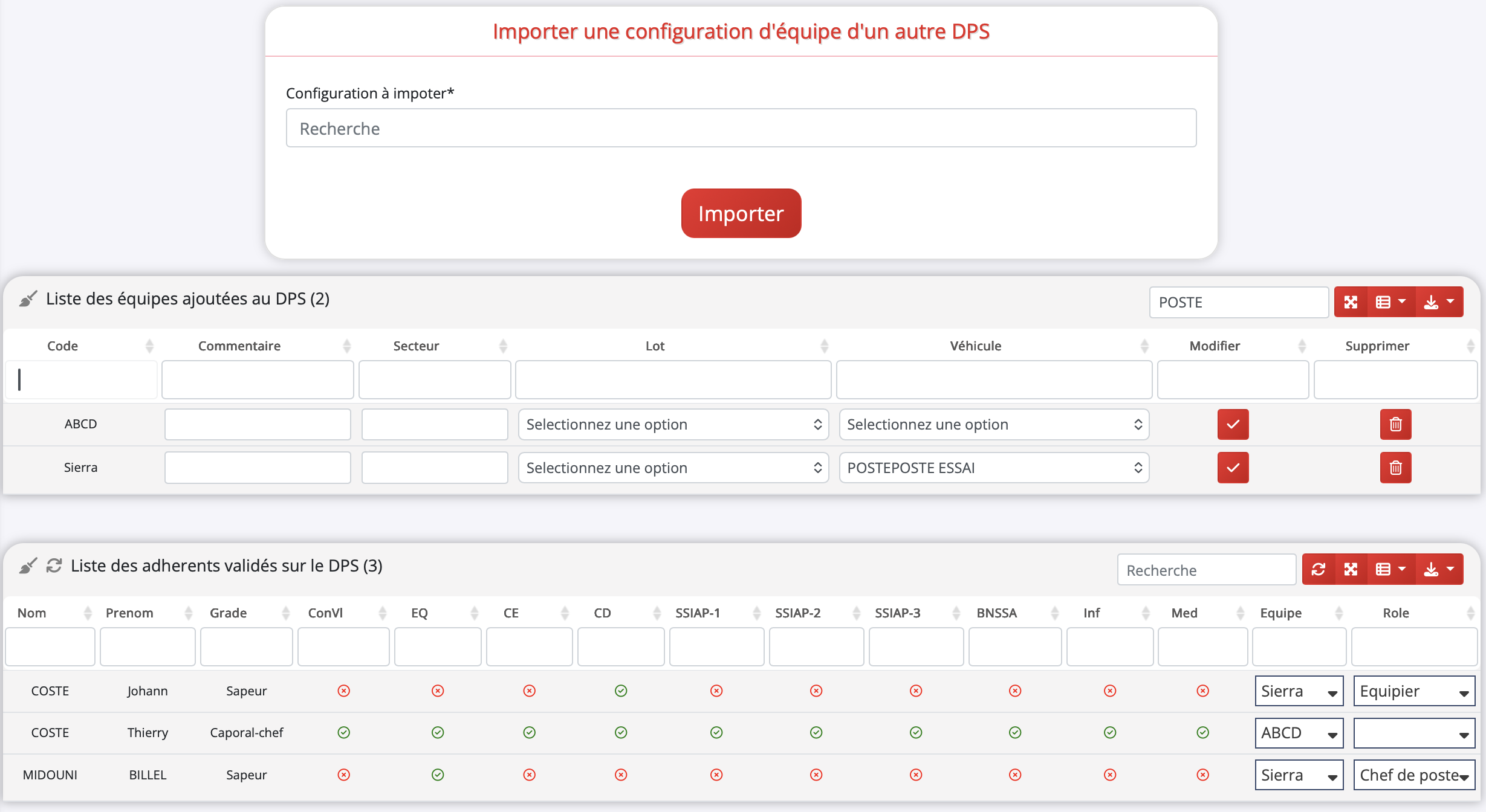 Pour gagner du temps, la page de gestion des équipes vous propose une fonctionnalité permettant d'importer la configuration des équipes d'un autre DPS. Attention, cette action importe uniquement les noms des équipes assignées à l'ancien DPS, elle n'assigne pas les membres.