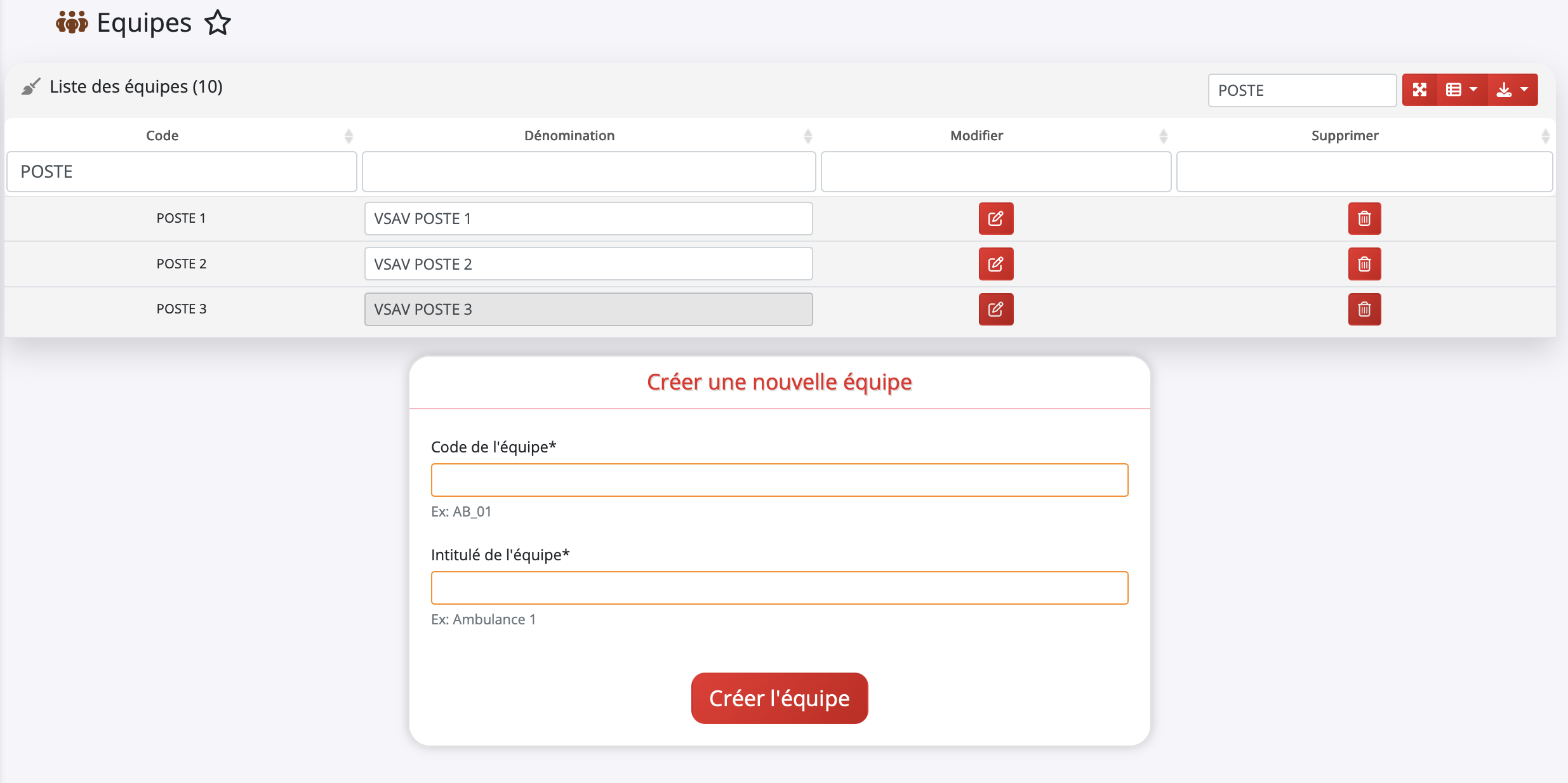 Avant toute chose, vous devez définir des noms d'équipes génériques qui seront réutilisables sur tous vos DPS. Pour cela, rendez-vous dans Paramétrages > Equipes. Créez ici des modèles simples (ex: "Equipe 1", "Equipe ALPHA", "Equipe Logistique"...).